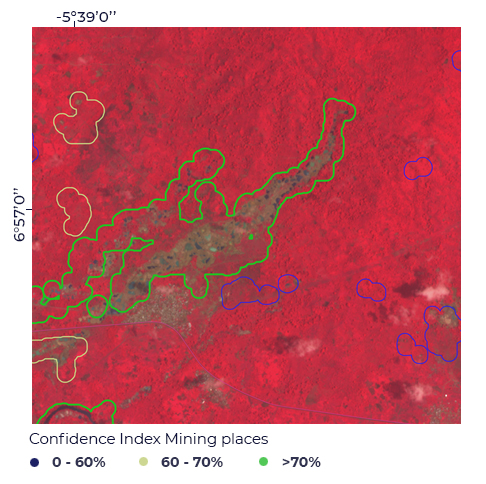 Ces données sont intégrées dans un algorithme introduisant un indice de confiance sur la probabilité que la déforestation soit générée par l’orpaillage.